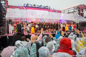 ライブは台風の影響から大雨の中行われたが、TWICEの登場に会場のボルテージはヒートアップ。大歓声の中、デビュー曲の『Like OOH-AHH』からスタートした。続いて2曲目に歌ったのは『TTポーズ』で日本の女子中高生などにブームを巻き起こした『TT』。観客も歌詞のフレーズに合わせて歌ったり、メンバーと一緒に『TTポーズ』をするなど会場に一体感が生まれた。
