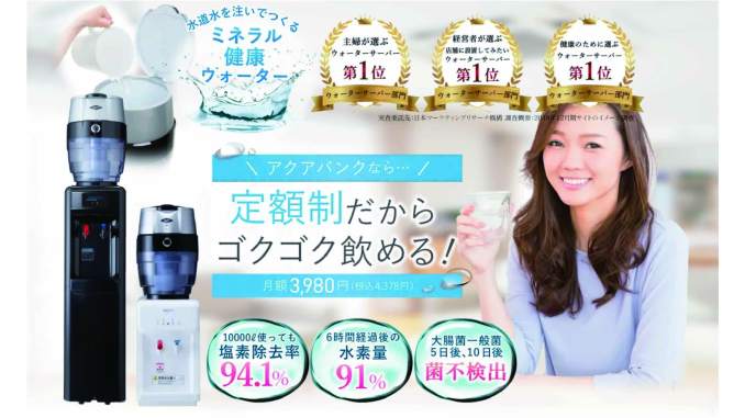そんなあなたにおすすめなのが、【アクアバンク】の水素水ウォーターサーバー。水道水を注ぐだけで、自宅でいつでも水素水が飲める画期的なサーバーとして、主婦や経営者のあいだで高い人気を集めています。