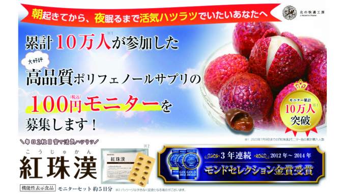 『紅珠漢』は、“自然界で最強クラス”とも言われるライチ由来ポリフェノールを、特許レベルの技術で低分子化(小さく)して体に吸収されやすくした温活サプリです。