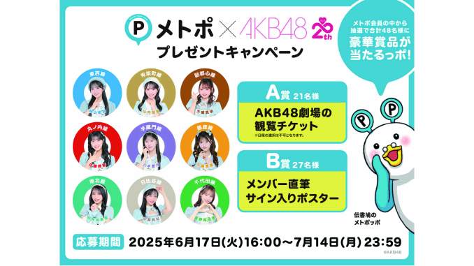 6月17日(火)から、メトロポイントクラブ「メトポ」会員限定で、AKB48の選抜メンバー9名が登場するシークレットポスターキャンペーンがスタートする。
