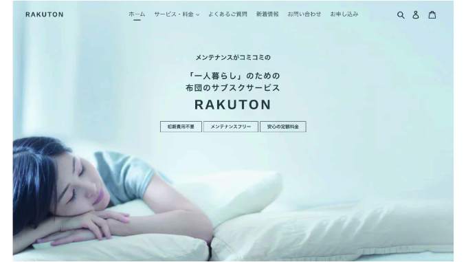 RAKUTONは、月額制で布団をレンタルできるサブスクサービス。布団の購入費用や管理の手間を省きつつ、常に清潔な寝具で快適に眠れることが特徴です。