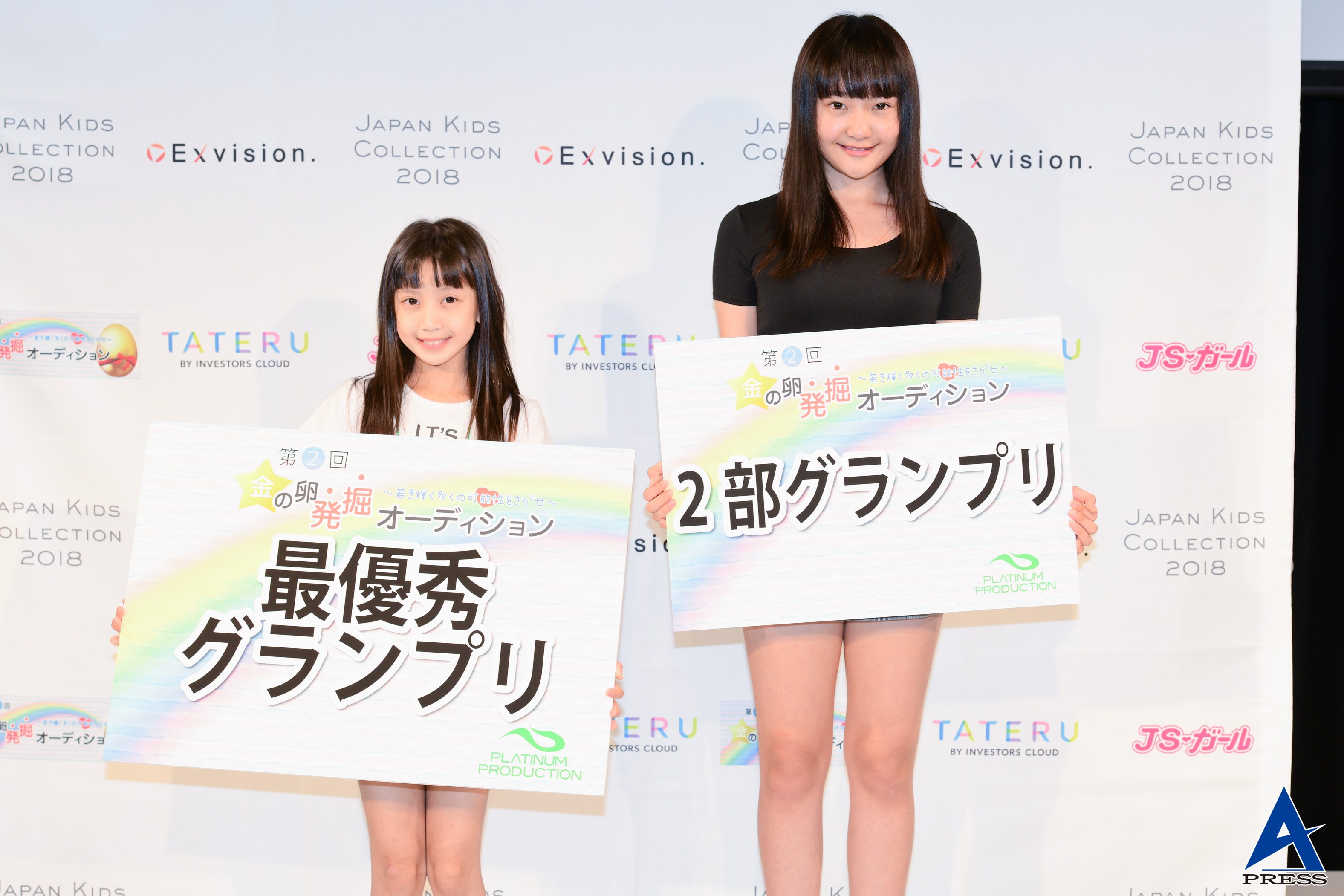 プラチナムプロダクション主催の『第2回金の卵発掘オーディション』が11月4日、原宿・ベルエポック美容専門学校で開かれ、女子小学生の部に安藤百華ちゃん、女子中学生の部に田中愛夢里さんがグランプリに輝いた。
