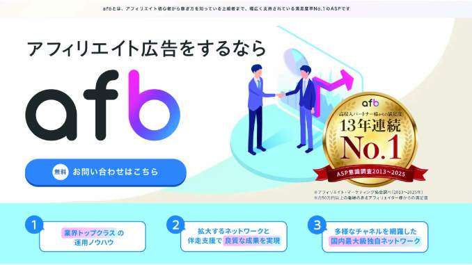 アフィリエイト広告を活用したい企業にとって、効果的な集客は最重要課題です。ASP(アフィリエイト・サービス・プロバイダ)の**「afb」**では、広告主募集のプロモーションを実施中。掲載することで、新しい広告主の獲得が可能となり、パートナーへの多彩なプロモーション紹介も可能です。本記事では、afbの特徴、アフィリエイトのメリット、実際の導入事例まで詳しく解説します。