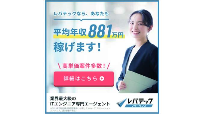 レバテックフリーランスは、ITエンジニア・Webエンジニア特化型のフリーランス案件紹介サービスです。