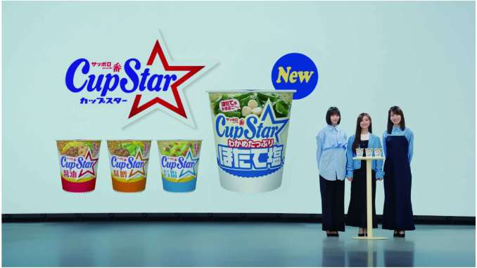 同CMは、サンヨー食品が新発売した「サッポロ一番 カップスター ほたて塩味」の登場にあわせて制作されたもの。1975年の誕生以来、ロングセラーとして親しまれてきた「カップスター」シリーズに、新たな味として“ほたて塩味”が仲間入りした。