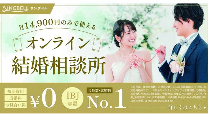 **RINGBELL(リングベル)**は、オンラインで手軽に婚活できる上、IBJ加盟の信頼性を兼ね備えた結婚相談所です。