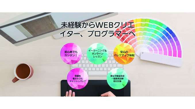 プログラミング・Web制作・デザインなどの在宅スキルが学べるのが特徴です。