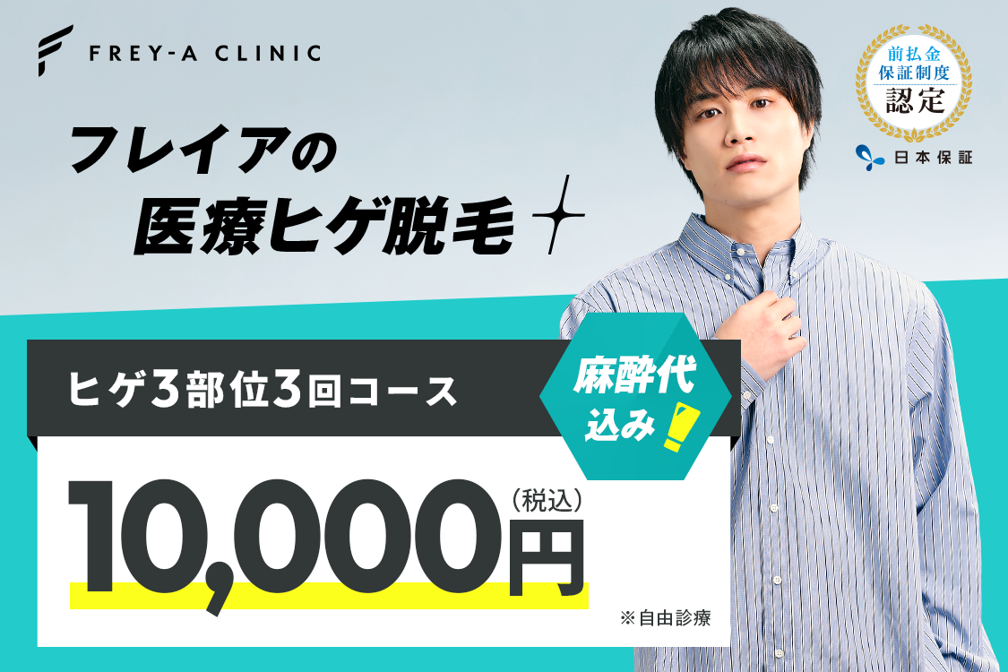 フレイアクリニックは全国に院を展開する医療脱毛専門クリニック。女性向けで培った実績を活かし、男性向け医療脱毛にも対応しています。