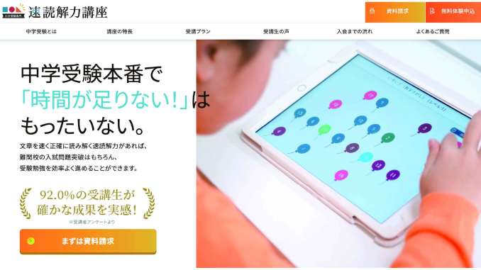 【中学受験専門・文章読解の苦手克服 オンライン速読解力講座】。