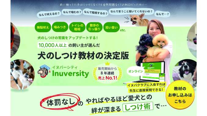 **Inuversity(イヌバーシティ)**は、犬のしつけを動画で体系的に学べるオンライン教材です。