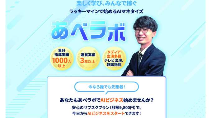 あべラボは、AIを活用した副業・ネットビジネスを学べる月額制オンラインサロンです。
