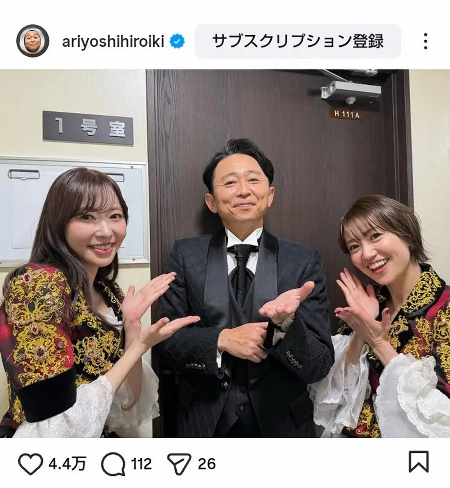 ©有吉弘行公式インスタグラムから@ariyoshihiroiki