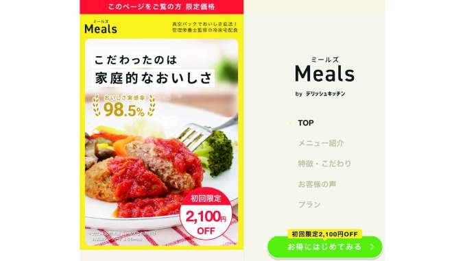**DELISH KITCHEN(デリッシュキッチン)監修の冷凍宅配弁当『Meals(ミールズ)』**です。