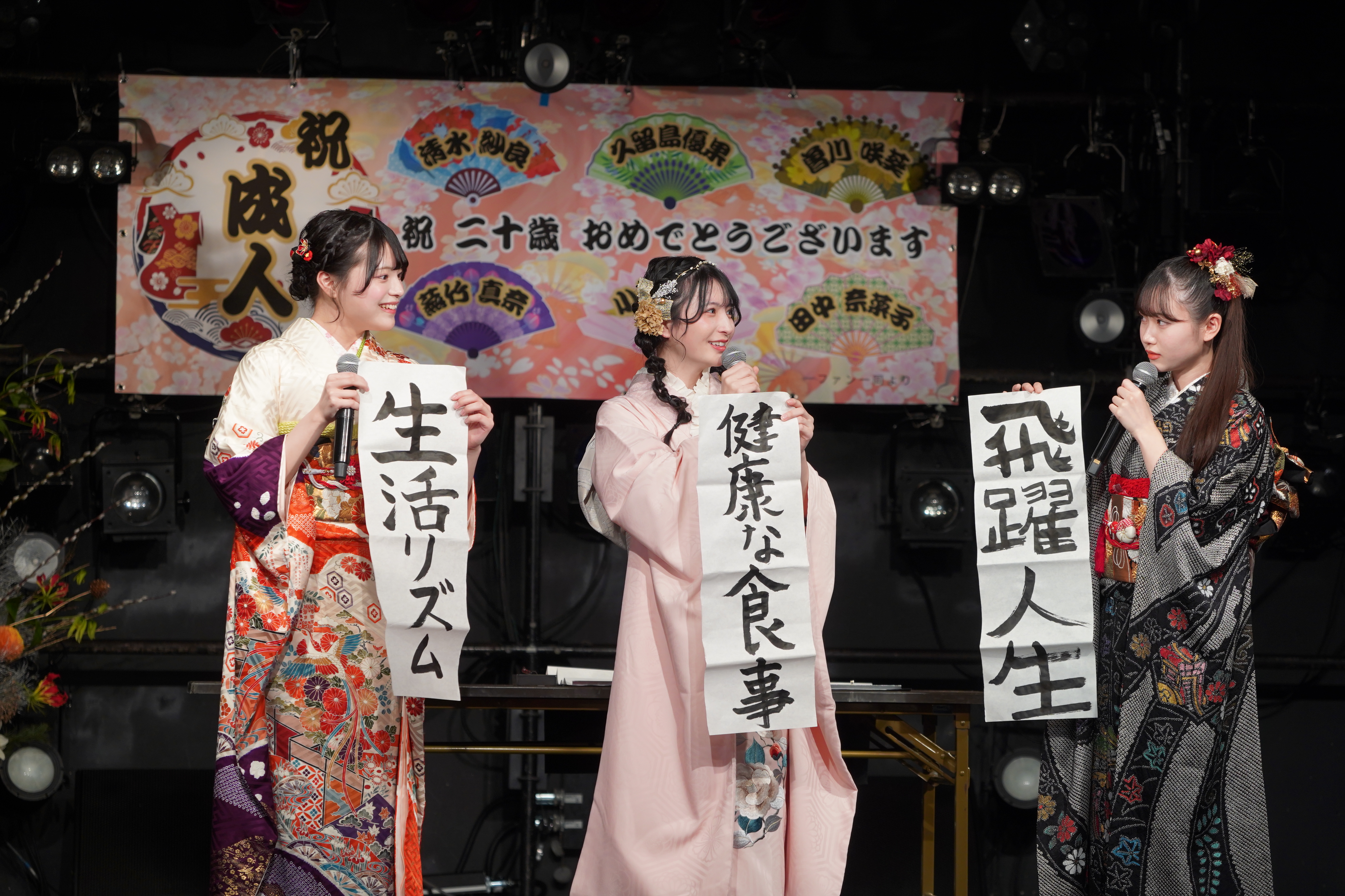 書き初め企画では、それぞれが今年の目標や将来への思いを筆に託し、20歳としての第一歩を改めて胸に刻んだ。ファンとの交流を楽しみながら、大人への門出を祝う、かけがえのないひとときとなった。