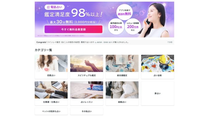 「アプリで通話料がかからないのが助かります。15分ほどでサクッと視てもらいましたが、心がスッと軽くなりました。」(20代・女性)