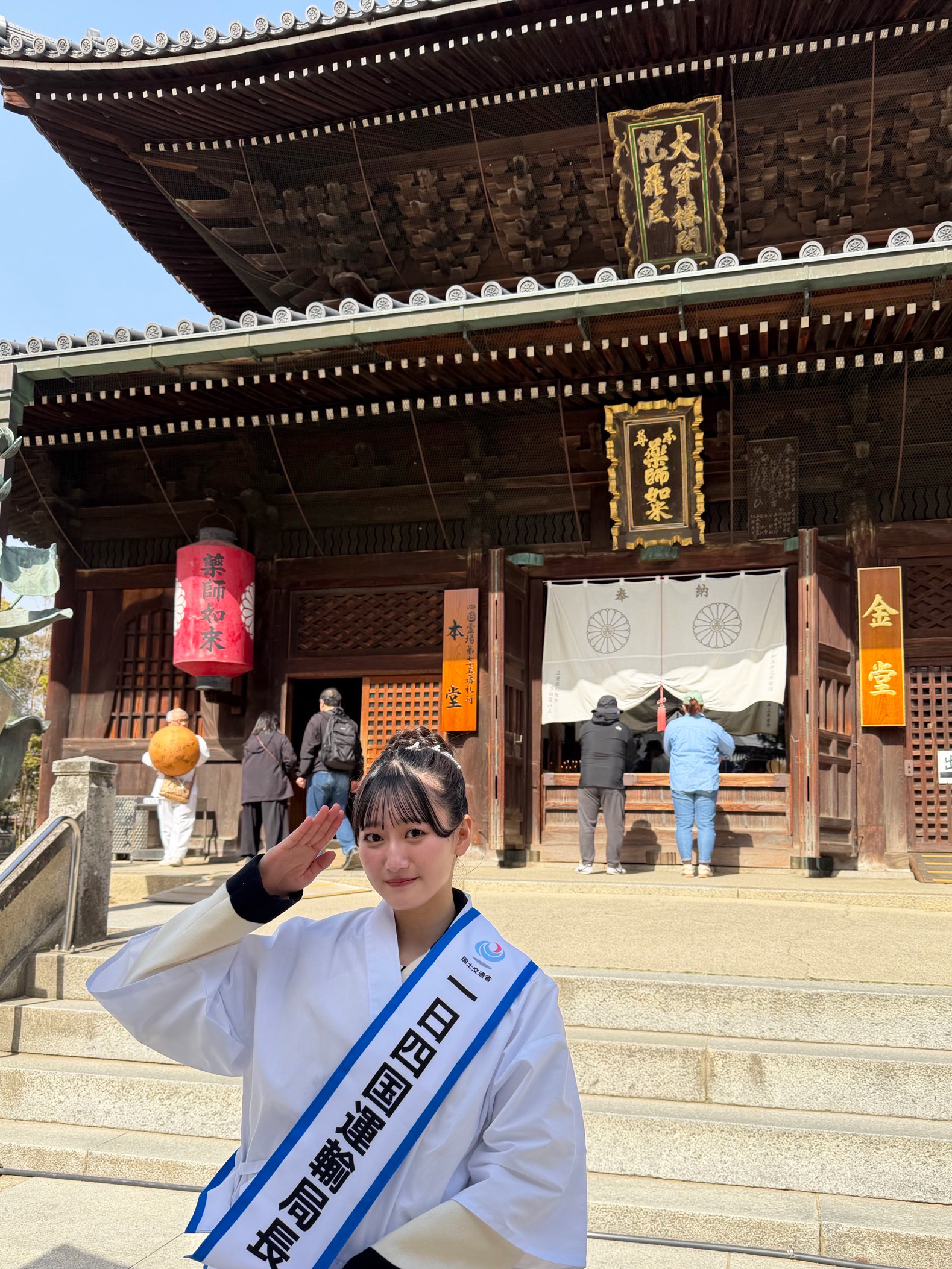 瀬戸内を拠点に活動するアイドルグループSTU48の信濃宙花が、NPO法人遍路おもてなしネットワーク主催の「一日一斉おもてなし遍路道ウォーク」に参加し、「一日四国運輸局長」として四国遍路の魅力発信に一役買った。