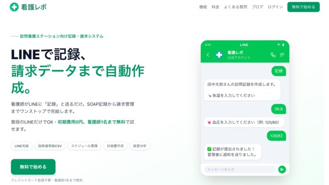 「看護レポ」は、株式会社STANDXが提供する、訪問看護ステーション向けの記録・請求システムです。