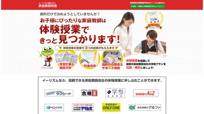 家庭教師選びで絶対に失敗したくないなら、複数社の「体験授業」を一括で無料予約できるポータルサイト「イーリズム塾さがし」を活用するのが一番の近道です!