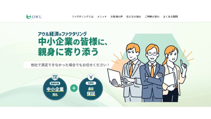 株式会社アウル経済は、利用者の90%以上が中小企業という、まさに「中小企業に特化したファクタリング会社」です。建設業、製造業、運送業、IT業界など、支払いサイクルが長く資金繰りが圧迫されやすい業種への深い理解があり、親身なサポート体制に定評があります。