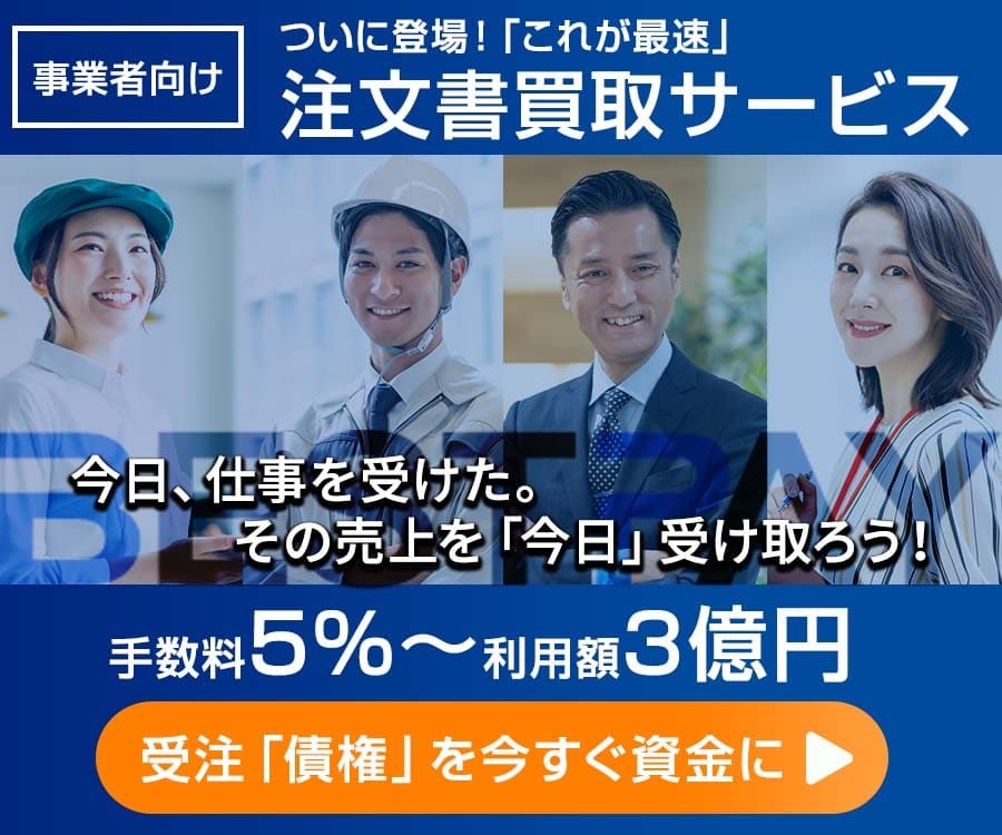 そんな「受注直後」の資金問題を劇的に解決してくれるのが、「BESTPAY(ベストペイ)」の注文書買取ファクタリングです。